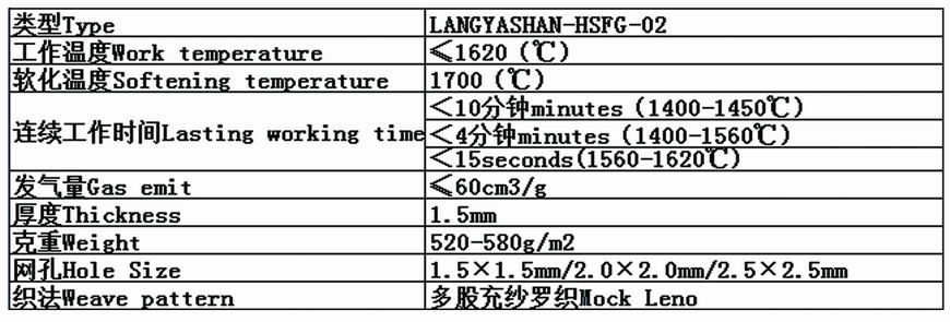 過濾網種類        工作溫度       軟化點   持續工作時間      室溫抗拉強度    發氣量  適用范圍